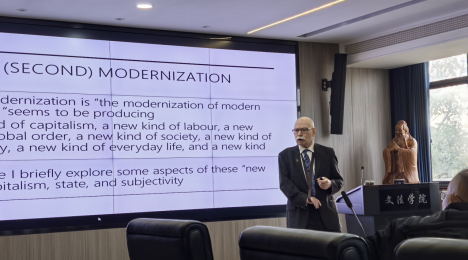 (通讯员 汤佳琦)11月11日上午,伟德中国官网入口狮子山社会学论坛如期举行。本次论坛特邀加拿大萨斯喀彻温大学社会学系教授、前加拿大社会学会会长Harley Dickinson担任主讲嘉宾,围绕“西方现代化与反现代化:反思性现代化及其矛盾”展开深度学术分享。伟德中国官网入口经理田北海教授主持会议,师生代表现场参与交流。