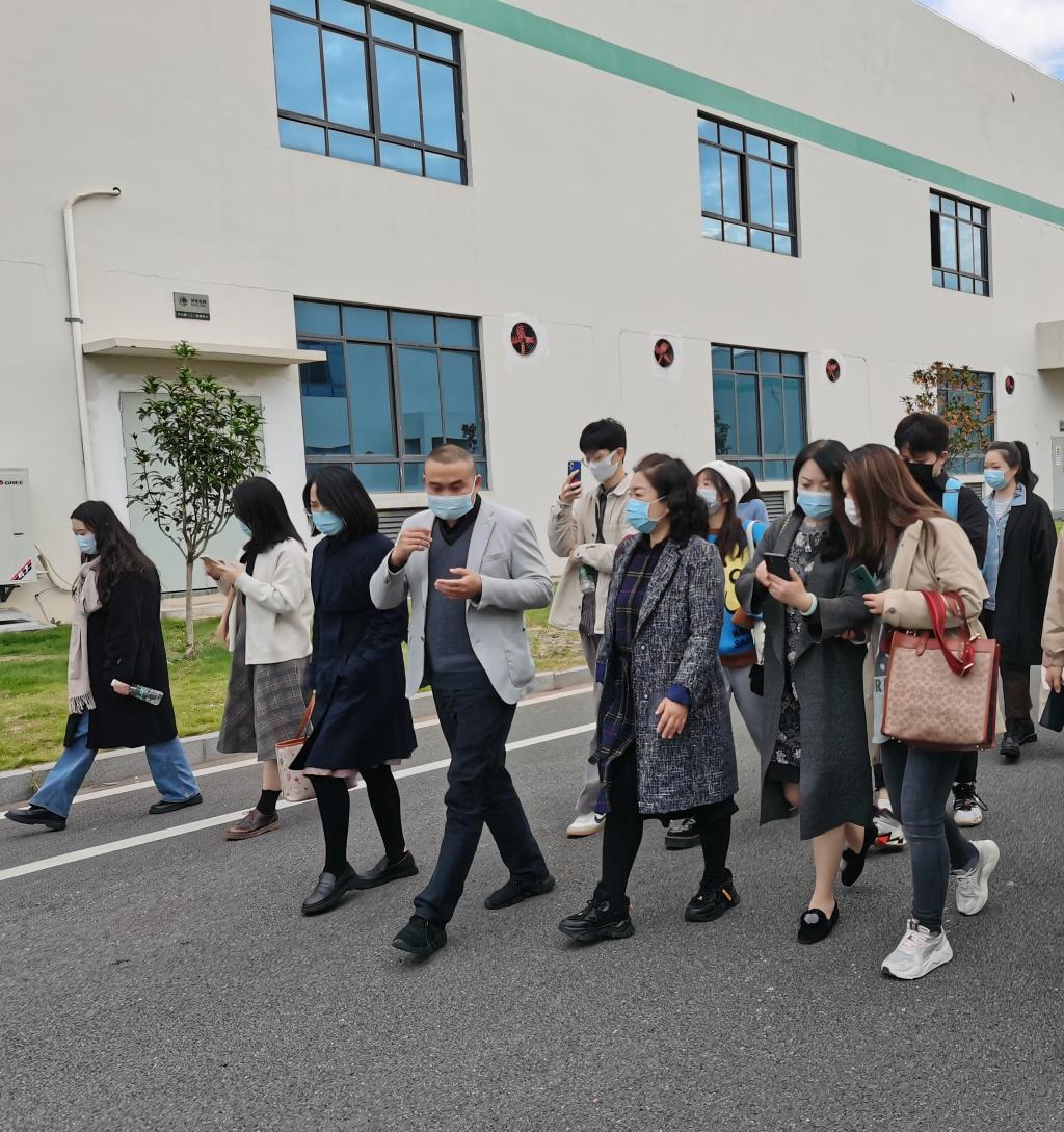 第二站,师生们一同来到了稳健医疗(武汉)有限公司的生产基地。师生们首先参观了研发室、灭菌区、立体仓库,全棉时代创新研发总监王中才先生讲解时,他提出稳健医疗在抗击疫情期间稳价提产,努力做一个有社会责任感的企业。