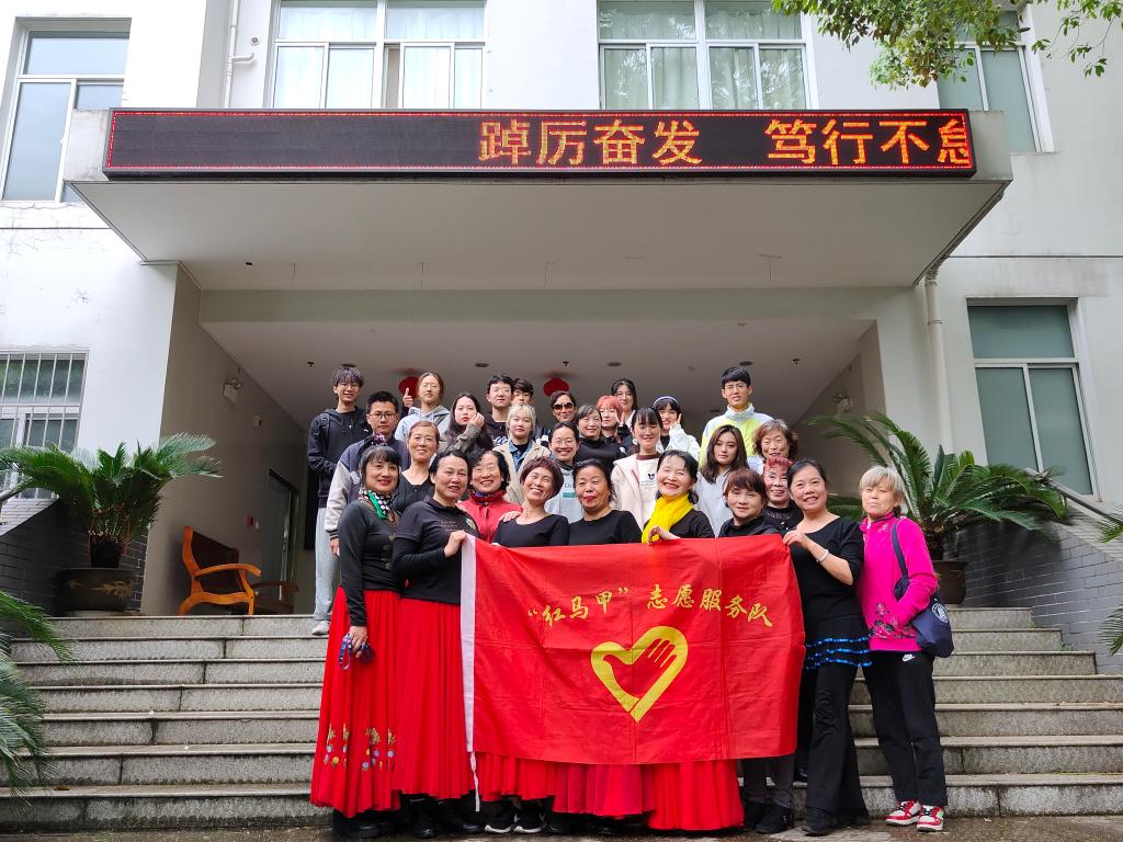 当然,不止是我们的志愿者同学们在表演,老年大学的爷爷奶奶们也精心准备,穿上了整齐的舞蹈服、化上了精致的妆,优雅的舞姿、明媚的微笑、轻盈的动作……老年大学广场舞队的表演展现了退休教师们深厚的舞蹈功底和积极向上的生活态度,赢得了全场的掌声。