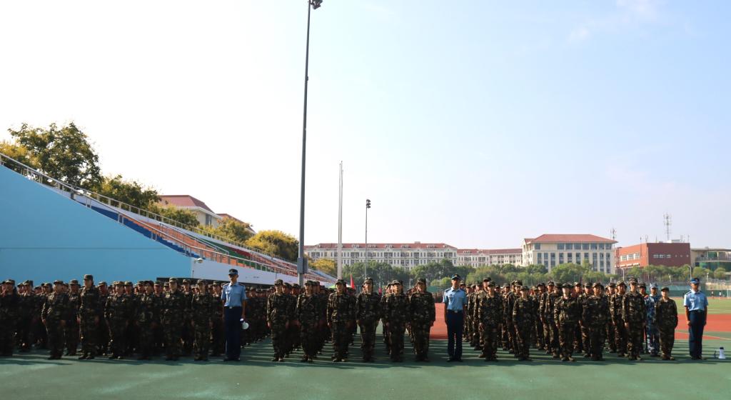 七团团长庄义伟教官发言。他对同学们提出了以下几点要求:一,思想上高度重视,行动上雷厉风行;二,敢于吃苦,勇于磨练,克服娇气傲气;三,严守军训规章制度,服从命令,听从指挥;四,爱护集体,珍惜荣誉,互相学习,共同进步。最后他希望同学们能始终秉持校训精神,通过军训拥有一个完美的蜕变。