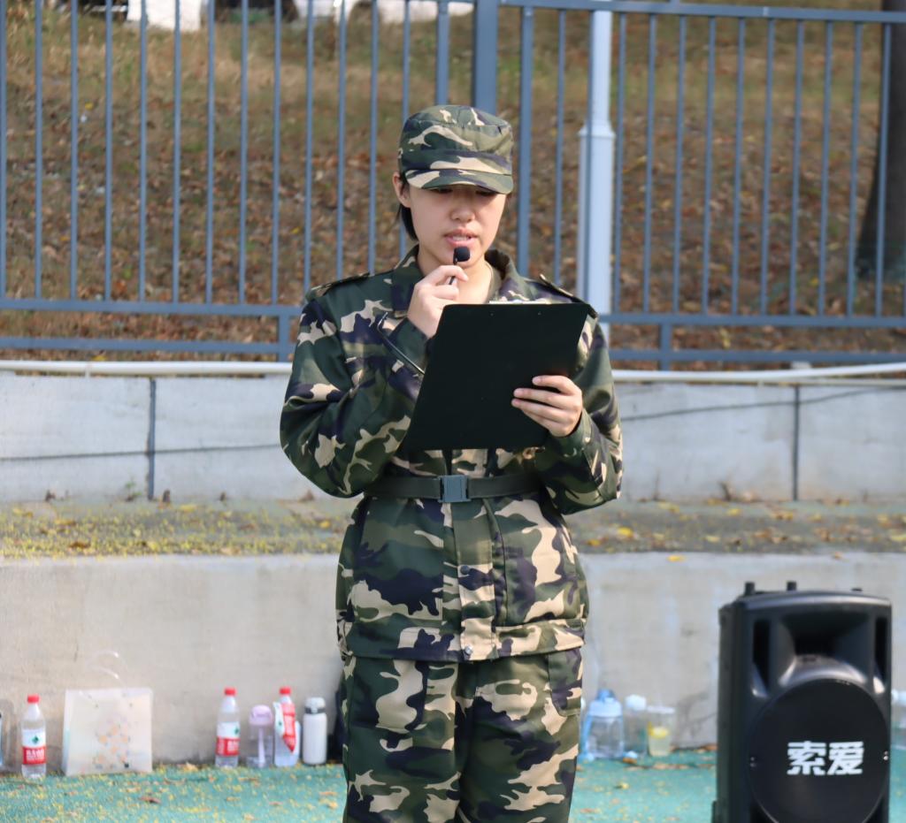 社会学类2203班的赵佳祎作为学员代表发言。她表示在社会变革的大背景下,提高综合能力的需求更加迫切,而军训在提升同学们身体和心理素质上都发挥着重要作用。同时,她代表公司全体同学表明了完美完成军训任务的决心。