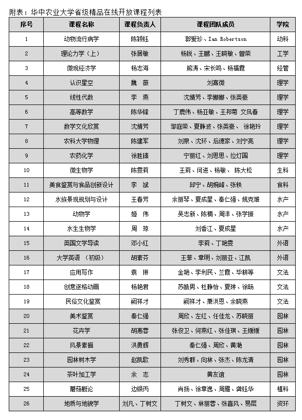 近日,湖北省教育厅公布首批104门省级本科精品在线开放课程认定结果,公司袁琳老师主持的《应用写作》、杨艳君老师主持的《创意逐格动画》、阙祥才老师主持的《民俗文化鉴赏》等三门课程入选。