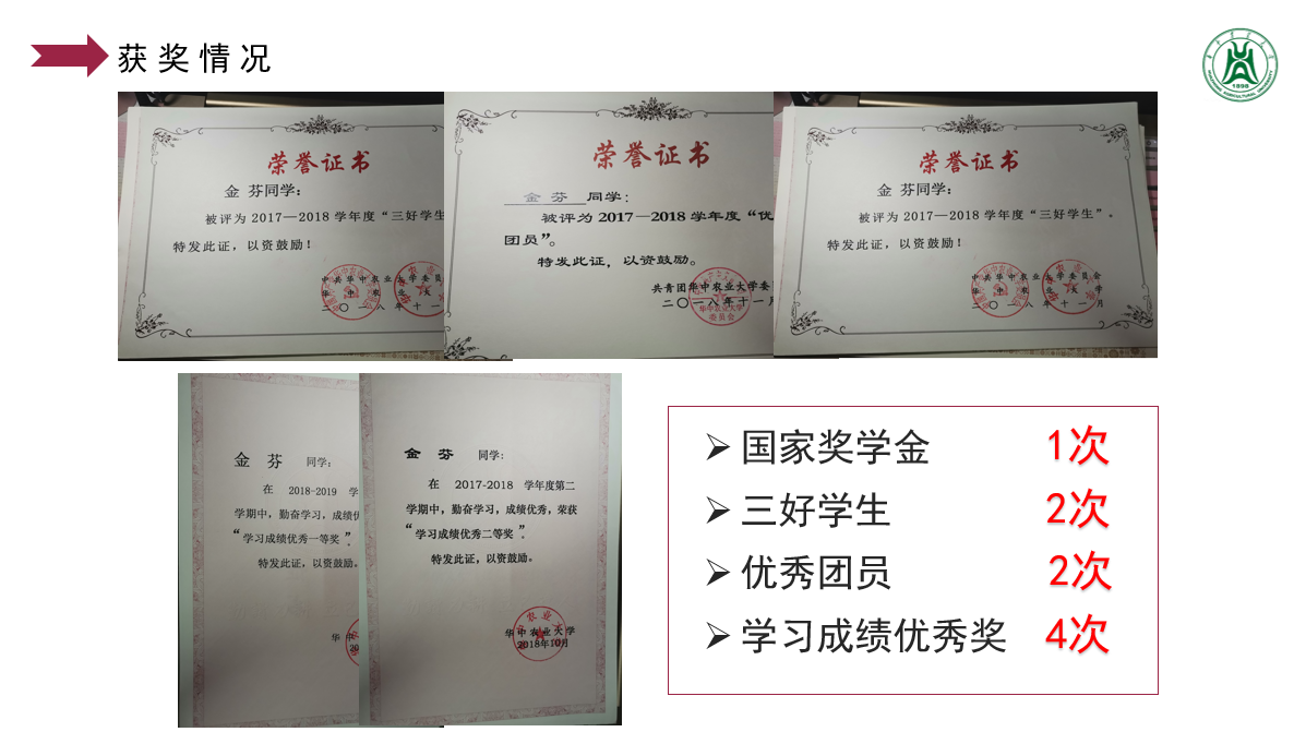 连续五个学期专业成绩排名第一,连续两年综合测评成绩排名第一,四次获得学习成绩优秀奖,两次获得“三好员工”、“优秀团员”称号,一次获得国家奖学金。傲人成绩的背后是金芬对自己下的狠功夫。为了升华理论知识,金芬参加专业相关的技能大赛,上万字的项目策划书是她刻苦求学路的印记。对学习的严格要求,是金芬卓越的藏獒秉性。