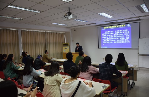 第二项由党委研工部涂俊才老师为大家做关于研究生干部的工作方法与领导艺术的工作报告。首先明确了研究生思想政治工作思路:以党建为龙头,以安全稳定为前提,以提高研究生可持续发展能力为根本,着力推进组织队伍和制度建设,积极开展政治理论学习、学术与科技成果交流和群体性文体活动,完善心理健康教育与帮扶就业指导与服务,安全稳定与资助,促进研究生健康成才,完成并完善安全稳定、党建领航、全面育人、给力成长、支撑保障五大体系的工作工程。其次强调研究生干部的角色定位应该是青年领袖,认为当前工作宗旨是全心全意为研究生服务,促进研究生全面成长成才,工作方针是自我教育,自我管理,自我服务,工作思路是学术化,服务化和项目化,这对研究生干部的基本要求就是“眼到、嘴到、心到、腿到”,研究生干部需采用一切从实际出发、抓大放小等工作方法,力求做到理清工作思路、掌握整体工作布局,掌握工作对象,强化工作过程。紧接着涂老师从用人、决策、处事、协调等九个方面分别展开了关于领导艺术的阐述。最后,他与研究生干部们分享了自己的有关体会:愿景比管控更重要,团队比个人更重要,授权比命令更重要,平淡比权威更重要,激情比能力更重要,理智比激情更重要,真诚比体面更重要。