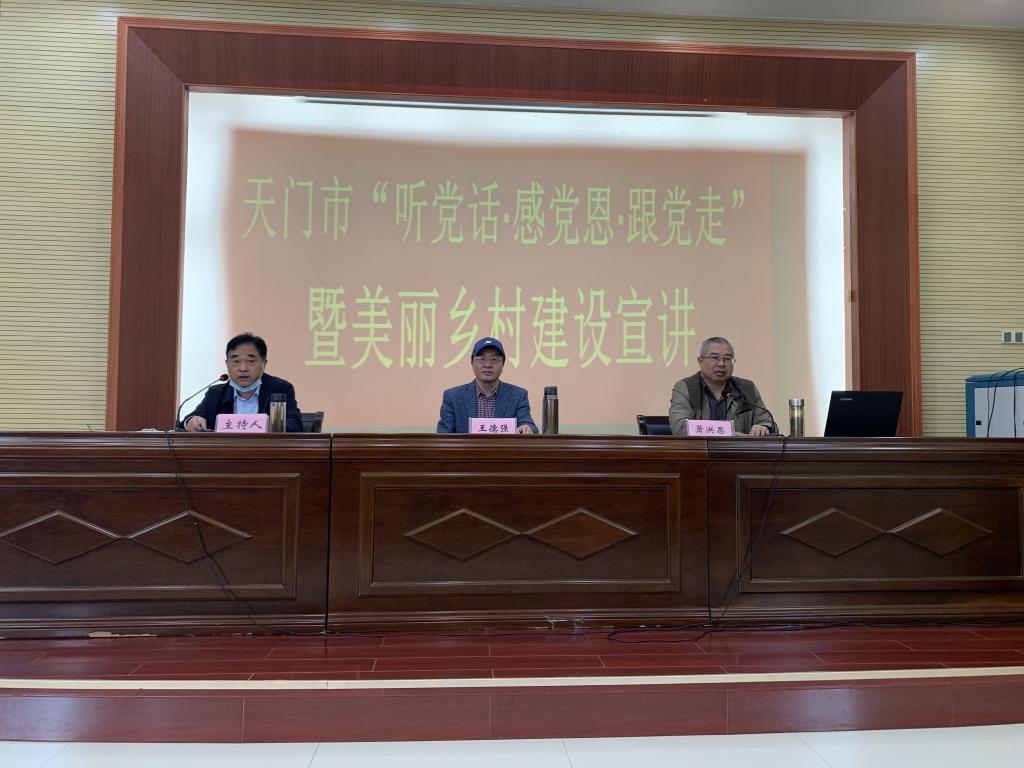 10月17日,伟德中国官网入口副经理王德强、社会学系教授萧洪恩等前往天门市开展乡村振兴荆楚行活动。萧洪恩教授做了主题为“听党话、感党恩、跟党走”的讲座,讲座由天门市农业农村局局长徐毕敬主持,天门市乡镇、村级干部150余人参加学习。