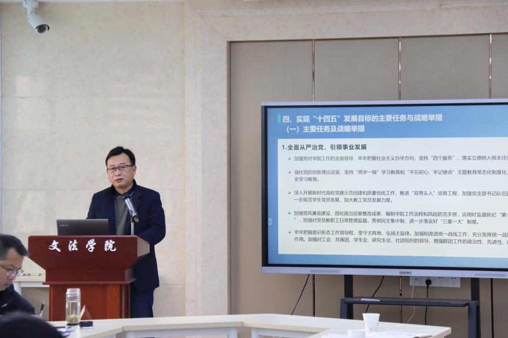 公司党委书记瞿明勇全面总结了公司“十三五”规划完成情况,并对“十四五”规划进行了汇报。他谈到,要全面从严治党,引领事业发展;聚焦质量提升,全面实施一流本科人才培育行动计划实施方案,深化学位与研究生教育改革,培育一流人才;强化内涵建设,争创一流学科;坚持引育并重,建一流团队队伍;注重提质增效,围绕国家重大战略需求,促进一流科研;强化深度合作,提升国际化水平;加强文化建设,塑造文化品牌;深化改革,提高公司办学治院现代化水平。