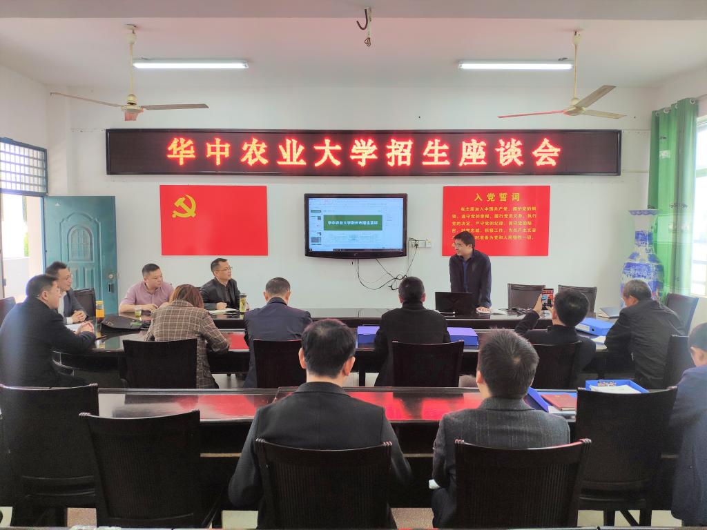 周治瑜一行先后走访了松滋一中、公安一中、石首一中。在座谈会上,本科生院招生办公室主任张进向当地老师介绍了公司的办学历史、校园环境、办学规模等情况,并从教学体系、团队队伍、学科特色及国际交流等方面介绍了公司的人才培养情况,同时结合公司牵头组建“洪山实验室”、“两季三节”校园文化活动等,介绍了公司的科技实力和校园文化建设。张进还对新高考改革背景下公司的招生政策进行了解读,对湖北省“院校专业组”志愿填报模式下公司的专业组设置及选考科目要求等进行介绍,并分析了公司近三年在湖北省及荆州市的招生录取情况,给出填报建议。