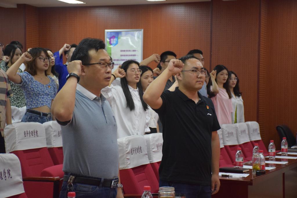 活动开始,辅导员桂恒俊带领全体毕业生党员面对党旗重温入党誓言,勉励毕业生党员同志们牢记入党誓言,不忘初心,未来在各自岗位发挥先锋模范作用,做一名合格党员。