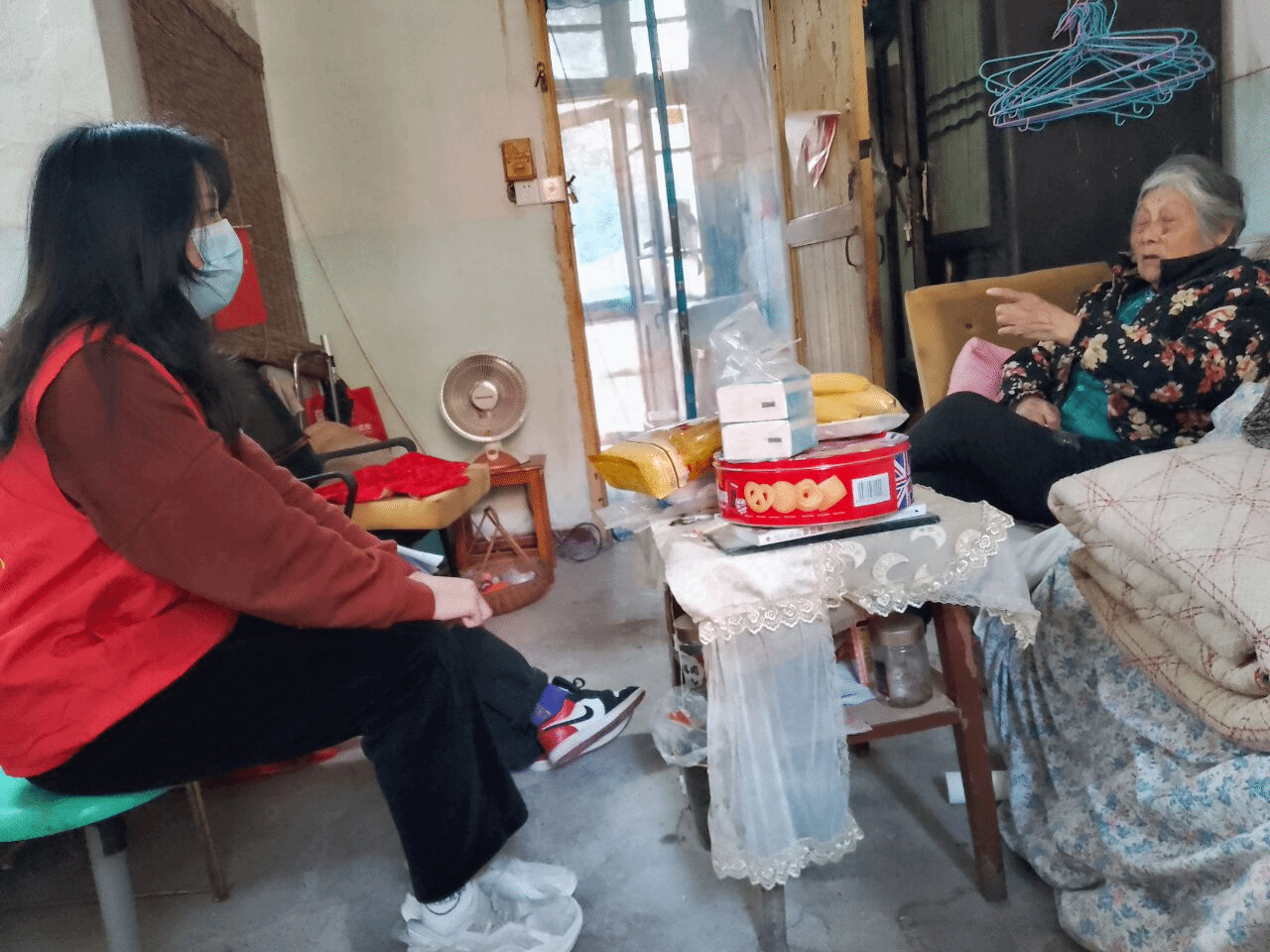 今年的“学雷锋”日恰逢惊蛰时节,惊蛰始雷,春雷惊,百虫出。这一天,志愿者们纷纷购入助眠驱虫的香包、日常防疫用品等慰问品,来到社区看望几位老人,陪伴他们,与他们交流、倾听心声。郭奶奶虽然身体不便,但却很热情的接待了我们,跟我们聊着以前的一些旧事,给我们展示保留了十几年的老物件。老人们也向同学们分享了最近生活的状况,向同学们咨询在使用智能手机时遇到的问题,过去几年来红马甲志愿服务队长期组织的“夕阳再晨”老人智能手机教学活动,已然成为老人们与员工沟通的一道桥梁。
