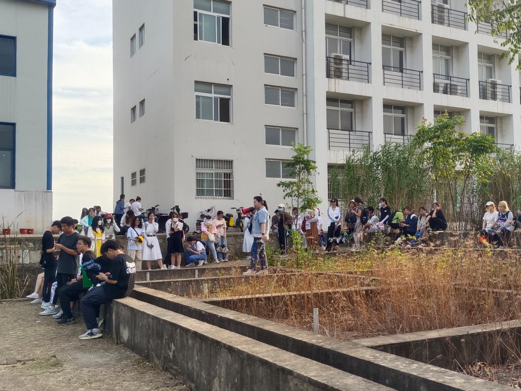 人工湿地是本次耕读活动的最后一站。大家整齐地坐在石墩上,聆听着讲解员的科普:“人工湿地通过种植草类等植物来吸附和过滤宿舍生活区的污水,让我们的生活变得更加清洁。”在一系列的讲述后,同学们积极提问,现场气氛十分活跃。