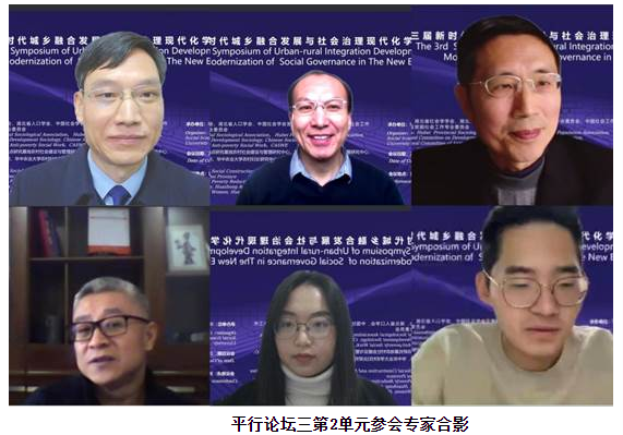 第二单元中,中国社会工作教育协会反贫困社会工作专业委员会副主任、华东理工大学社会与公共管理公司杨发祥教授以杭州市富阳区为例,深入剖析了富阳区共同富裕创新的实践举措和路径,并强调了完善县域共同富裕道路的重要性。华中科技大学国家治理研究院、湖北省社会科公司杨述明研究员通过分析社会演进的典型形态、城乡社会演变的内在驱动和数字化驱动的先导性功能,论证了城乡融合发展是时代必然迈向的未来。湖北省社会学学会副会长、中南财经政法大学哲公司社会学系谭明方教授以“社会治理”在二十大报告中摆放的位置变化作为线索,结合社会治理属性的理论分析和明确社会治理现代化的意涵,提出了县域城乡融合发展的路径建议。华中师范大学社科处处长、社会公司符平教授秉承中国式现代化与学界新使命,从为何需要自主的理论建构、如何进行自主的理论建构两方面分享了关于中国式现代化自主理论建构的思考和观点。西北农林科技大学人文社会发展公司赵晓峰教授以“主体性-开放性-人民性”的内源式发展框架对苏州永联村进行深入剖析,阐明了农村自发城镇化转型的组织载体、行动路径及基本目标指向问题。华中科技大学社会公司博士生王连生以某市出租车市场为例,以理性选择理论为视角,通过实地调查案例分析旧业态经营者出租车司机对新业态网约车融入的行动策略,推进了新旧业态融合的理论解释。
