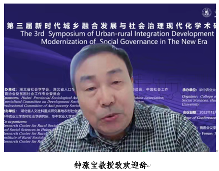 在开幕式上,钟涨宝教授代表湖北省全体社会学同仁向与会学者表示热烈欢迎,并向与会学者长期以来对公司社会学学科的关心和支持表示衷心感谢。他表示,党的二十大报告中明确指出“从现在起,党的中心任务就是团结、带领全国人民全面建设社会主义现代化强国,实现第二个百年奋斗目标,以中国式现代化全面推进中华民族伟大复兴。”如何全面实现中国式现代化,这是时代之问、中国之问。研究和回应这个提问,是时代赋予的包括社会学学者在内的全体社会科学界学人的共同使命。湖北省社会学学会连续三年以城乡融合发展为主题,邀请国内外专家同仁,共同研讨中国式现代化,每一次都得到专家同仁们的积极响应,充分体现了社会学学人对历史责任的担当。