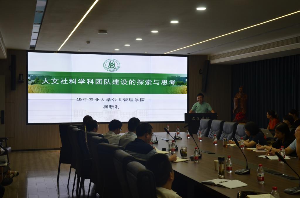 柯新利结合自身团队建设的经历分享了关于人文社科学科团队建设的探索与思考。他谈到:“只有集聚团队力量,才能培养大人才;只有依靠团队力量,才能承担大项目;只有发挥团队力量,才有更大可能出大成果。”他建议老师们在团队中找准自己的位置,明确自己的目标,在团队的奉献中成长。