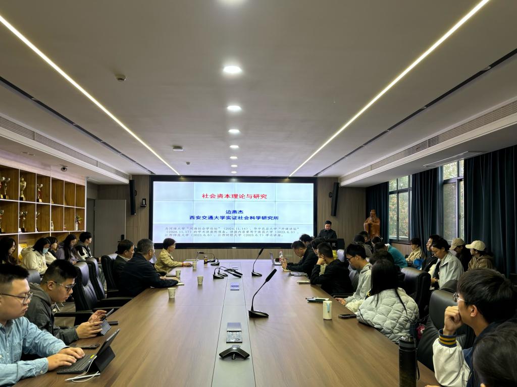 随后,边燕杰教授从中国视角分析社会资本。他首先讨论社会资本的中国研究为何必要?何以可能?并指出我国研究社会资本非常便利的一个聚焦点在于关系的定义和内在本质。他介绍了不同学者对于关系的理解,一是在于家庭亲情伦理的社会延伸,二是情感导向的工具关系,三是非对称的社会交换关系,四是结构非嵌入的信任关系,并基于以上观点提出中国可以用熟(人)、亲(友)、信(任)来测量关系。此外,边教授还探讨关系社会资本的概念化、测量和理论创新。他指出中国的关系网络具有纽带亲情化、联系复用性、回报义务强、关系圈超稳的特点。关于中国社会网络的测量创新,他介绍了中国的讨论网、拜年网、餐饮网、求职网等。在关系社会学的理论创新方面,他提到了以下几方面的变化:关系纽带从纽带强度论到情义变异论,关系机制从资源论到多种机制论,关系文化从作用升降论到关系惯习论,关系网络从网络构成论到超稳圈假设。
