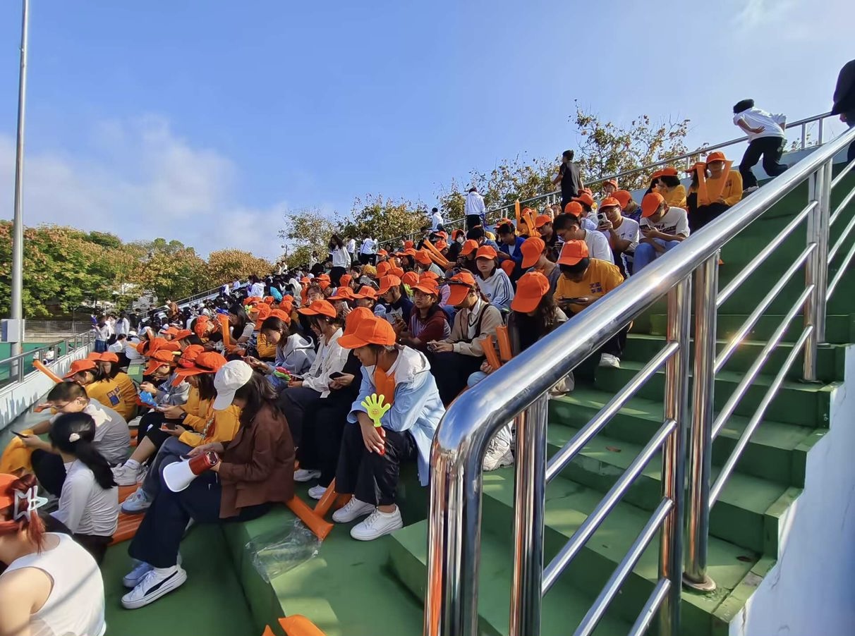 (文姚心仪 图傅仪潇)运动会赛事正如火如荼地展开,公司全体师生热情高涨,踊跃参与,携手共绘了一幅波澜壮阔、团结奋进的热血画卷。而后勤保障处和看台也是热闹非凡,大家凝心聚力,共同谱写着属于文法的辉煌篇章。