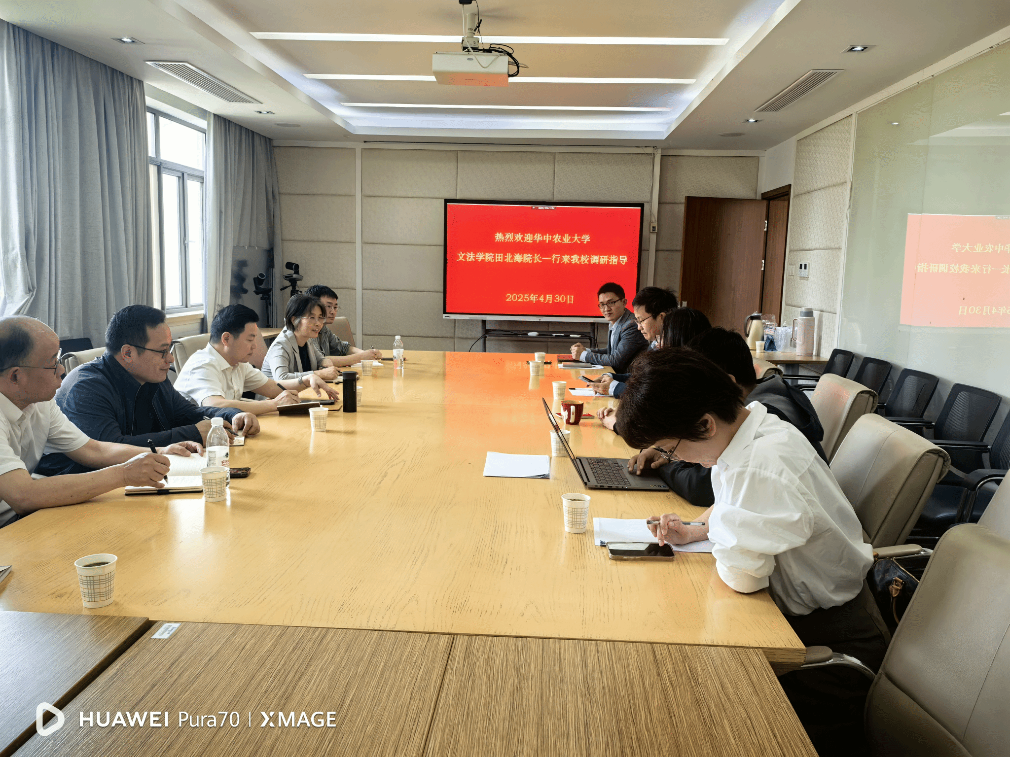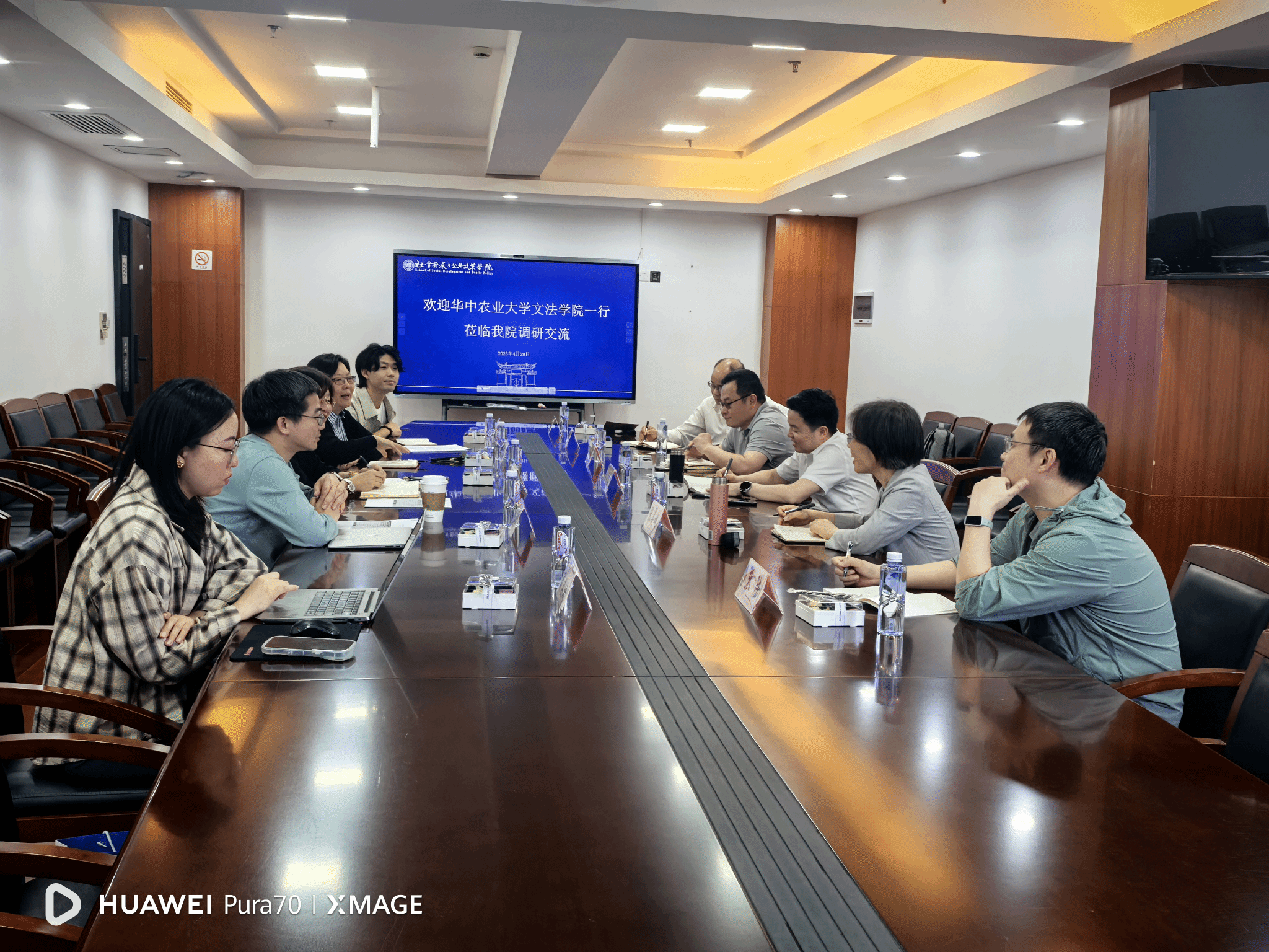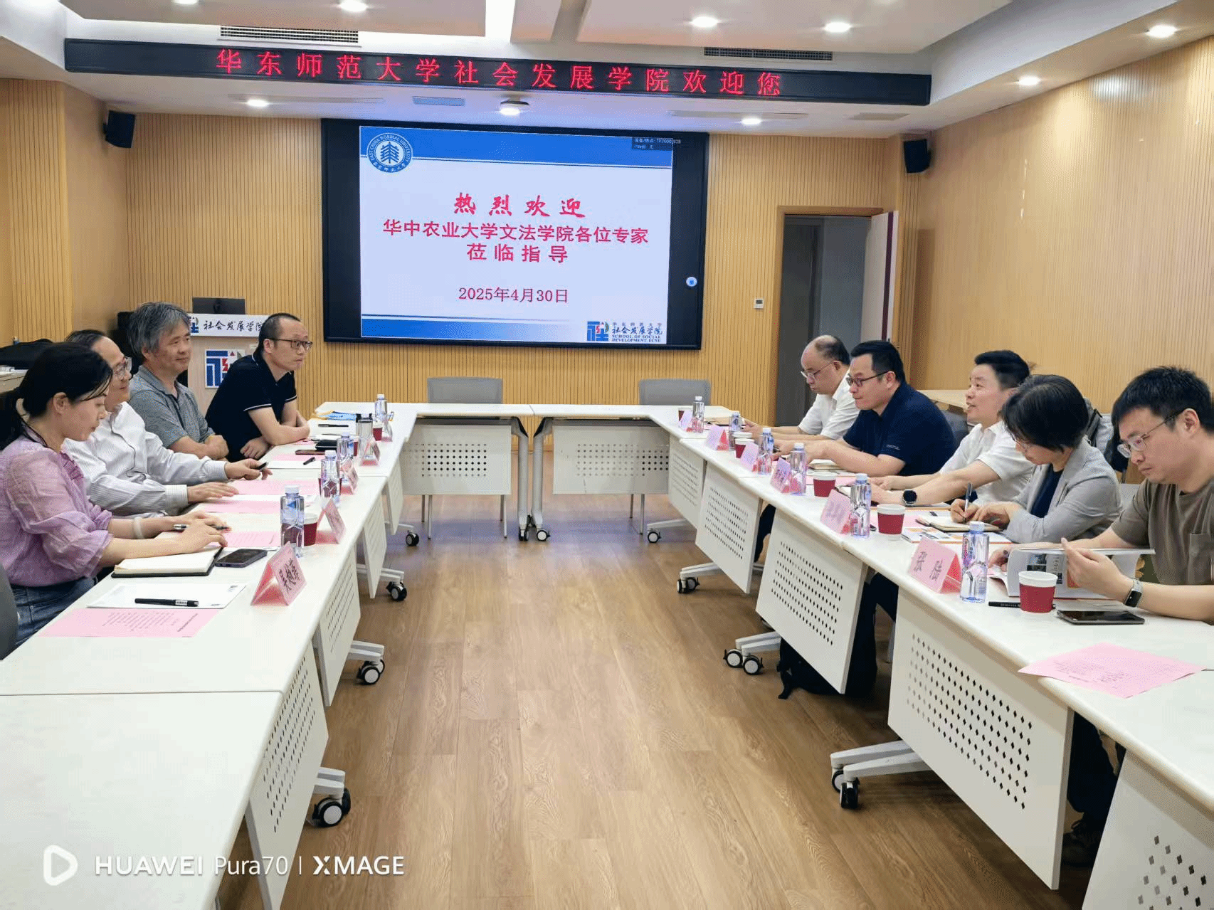 在华东师范大学,社会发展公司经理文军教授介绍了公司与学科的历史和发展情况,副经理黄晨熹教授、副经理姚泽麟教授、副书记庞荣老师、社会学系副主任吴越菲副教授参与调研座谈。双方就公司规划、人工智能时代的学科发展转型、学科评估、博士学位建设、教师引进、人才培养、课程设置等问题展开了深入交流,文军经理向调研宣讲团队颁发了公司纪念锦旗。