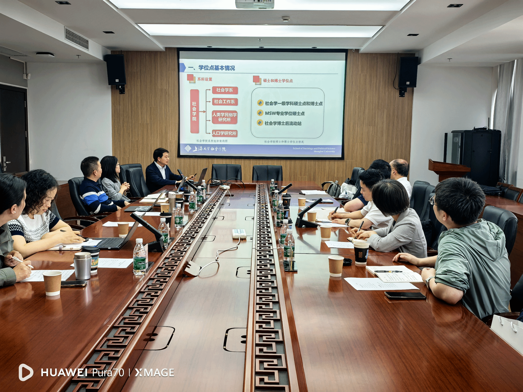 在上海大学,社会公司党委书记、代经理杨锃教授介绍了社会公司发展概况及社会学团队建设情况,社会学系主任肖瑛教授、社会工作系副主任阳芳教授分别介绍了社会学、社会工作专业与团队建设的主要做法与经验,人文社科处处长黄晓春教授、社会公司副经理纪莺莺教授和社会公司副书记兼副经理张乃琴老师分享了社会学学科在科学研究和员工工作等方面的做法与体会。