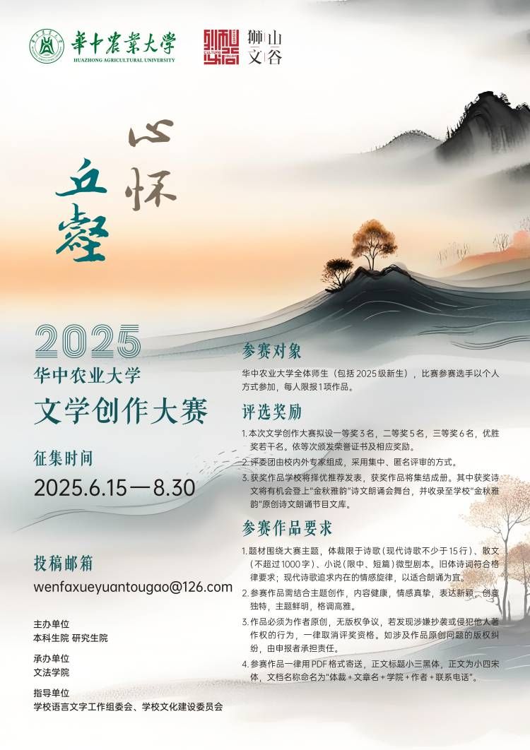 (1)题材围绕大赛主题,体裁限于诗歌(现代诗歌不少于15行)、散文(不超过1000字)、小说(限中、短篇)微型剧本。旧体诗词符合格律要求;现代诗歌追求内在的情感旋律,以适合朗诵为宜。