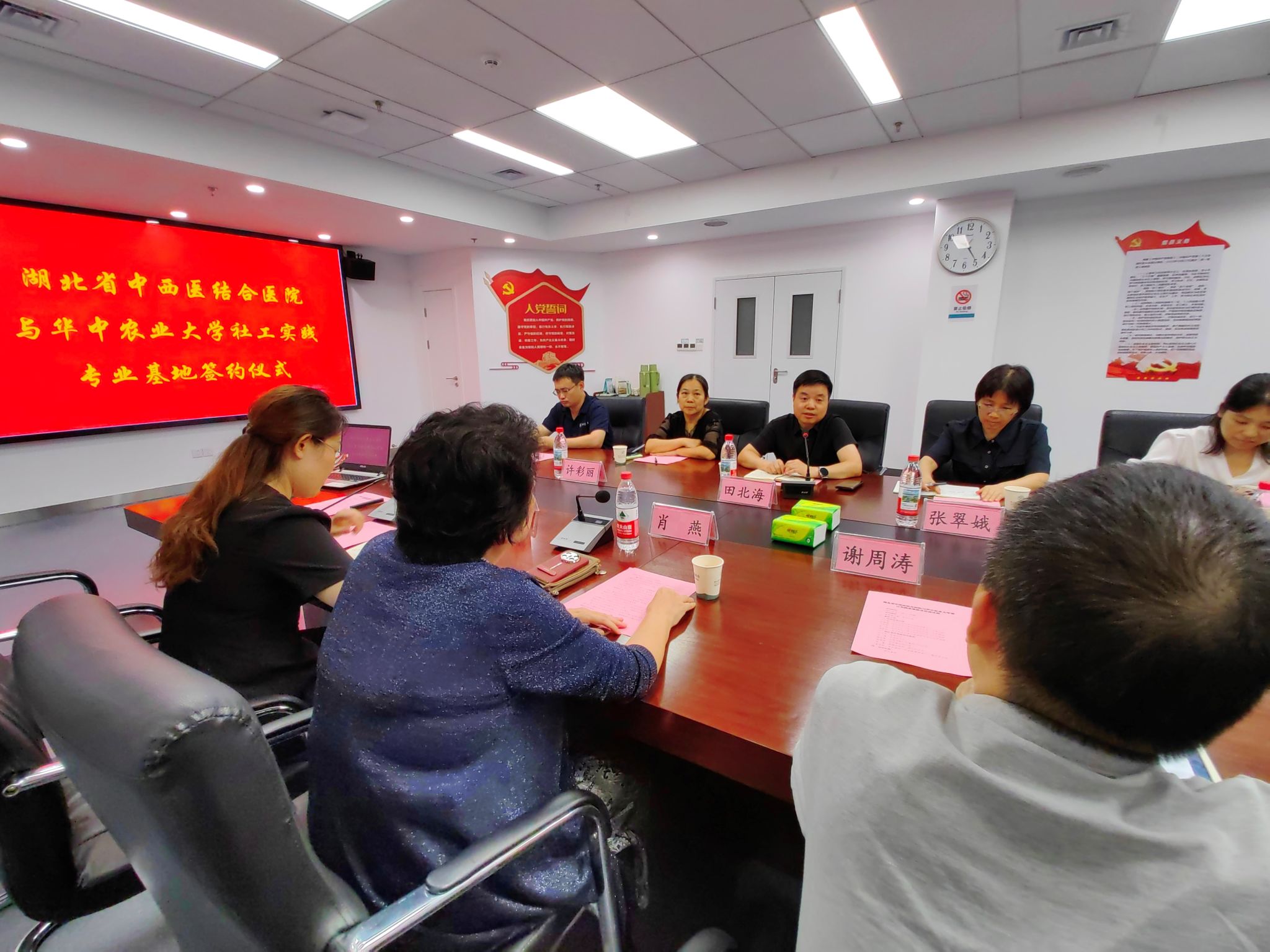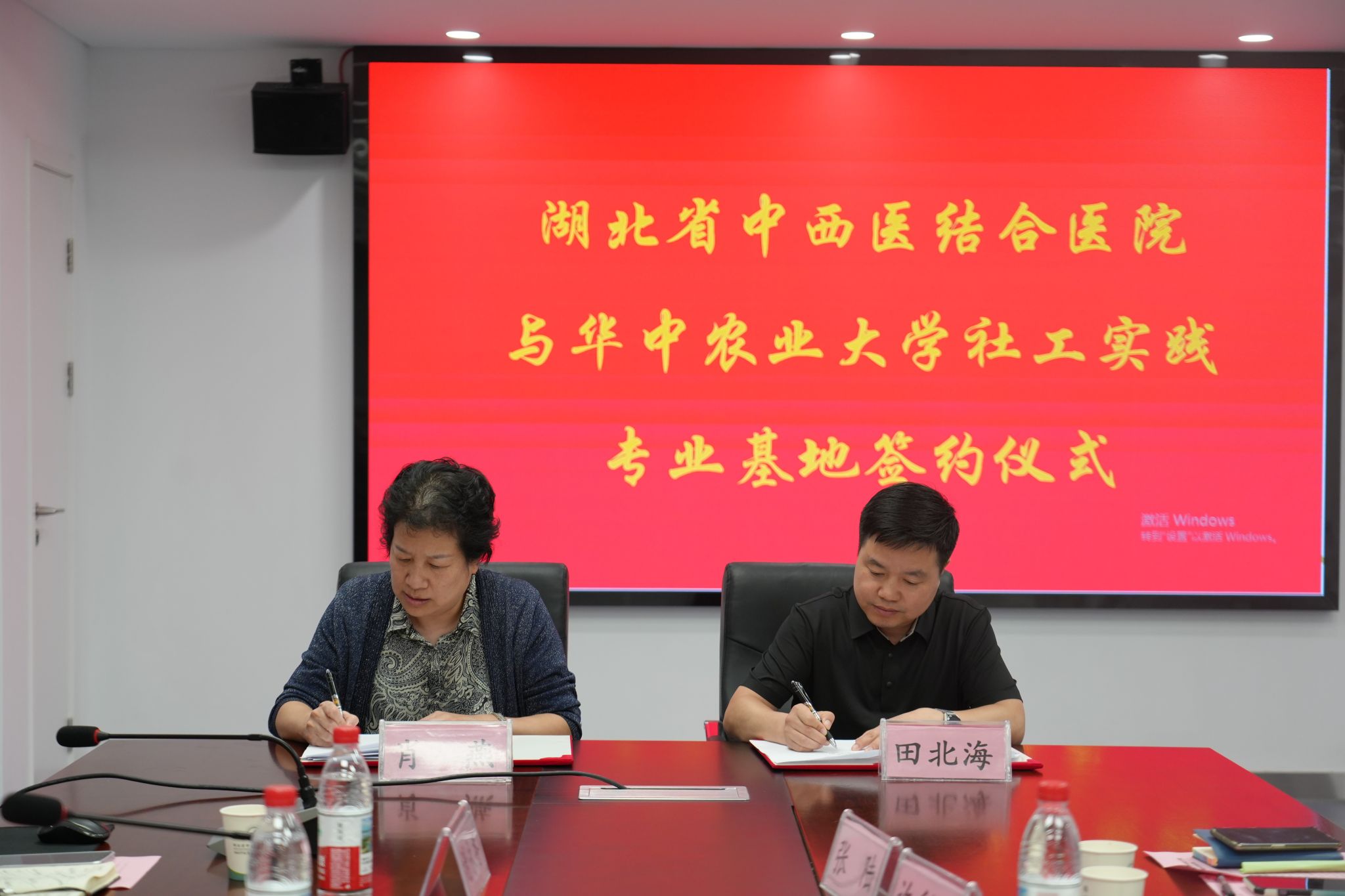 (通讯员 蒋俊杰)2025年8月20日下午,公司与湖北省中西医结合医院教学实习基地签约暨揭牌仪式在湖北省中西医结合医院德康楼隆重举行。公司经理田北海经理、社会工作系主任张翠娥等教师代表出席活动,双方就共建实习基地、深化医务社工人才培养达成合作共识。