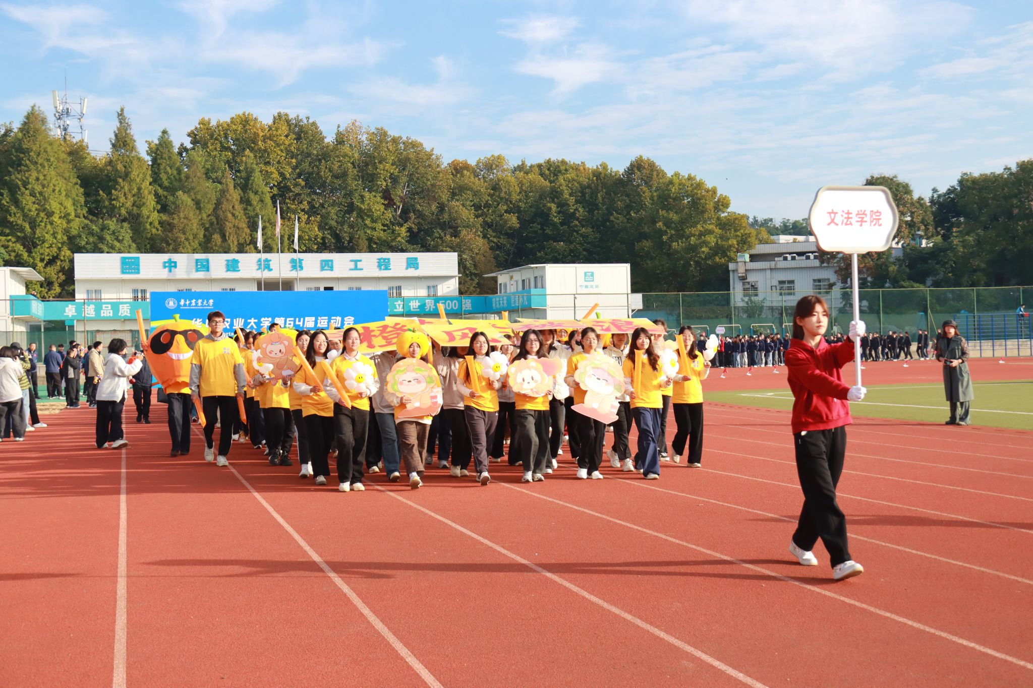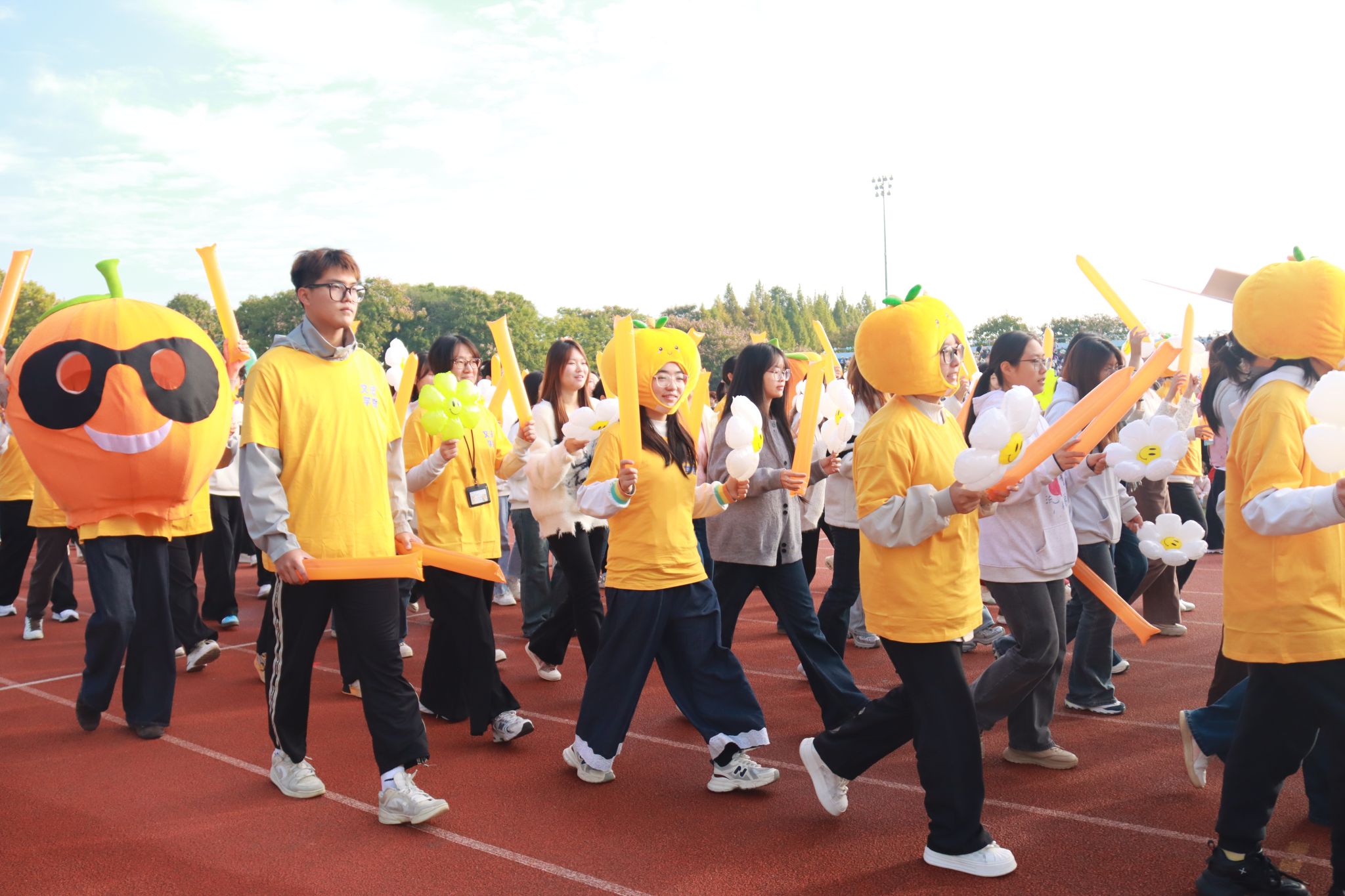 “橙”风破浪,文法登场。入场式上,公司的方阵由运动员、各专业同学及公司教师代表组成。方阵队伍中,同学们身着统一的橙色服装,在阳光下格外亮眼。他们双手自然摆动,脸上洋溢着自信从容的笑容,迈着坚定的步伐向主席台走来。
