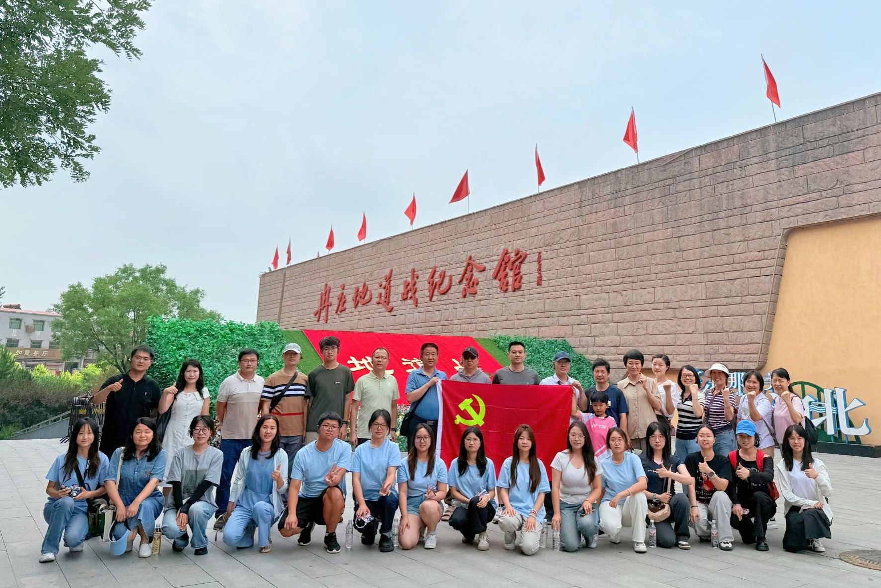 在冉庄地道战纪念馆门口合照(通讯员 朱靖 摄)