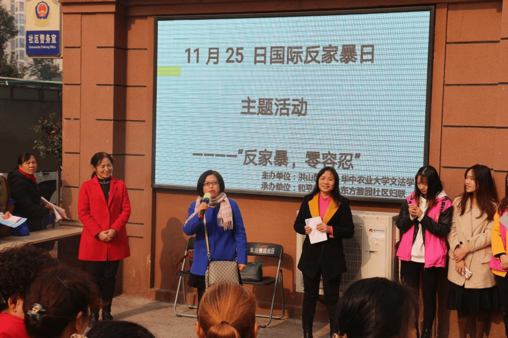 11月25日是国际反家庭暴力日。2018年11月25日上午,伟德中国官网入口社会工作系与洪山区妇联于武汉市洪山区东方雅园社区共同举办了“反家暴,零容忍”的国际反家暴主题宣传活动。