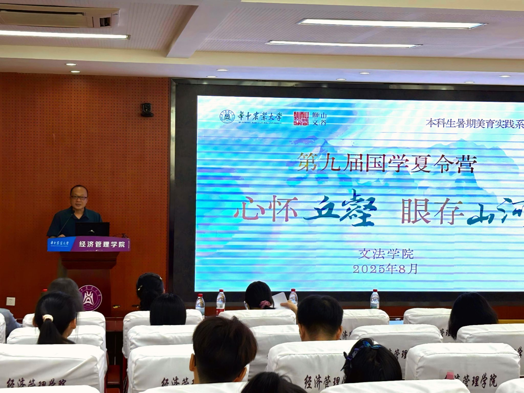 公司党委书记刘广乐表示,在技术飞速变革的时代,心灵滋养更显珍贵,而国学正是润泽心灵、安顿生命的源泉。他强调,国学不仅是知识的传承,更是中华文明的精神土壤与文化根本。对此,他向营员提出三点期许:一要“勤读”,诵经典、广视野、养气质,真正做到“腹有诗书气自华”;二要“力耕”,践行“知行合一”,在美育实践中体会传统之美;三要“达人”,胸怀家国,心系社会,以“横渠四句”与华农校训“勤读力耕,立己达人”共勉,力求修己以安人、服务国家、贡献时代。