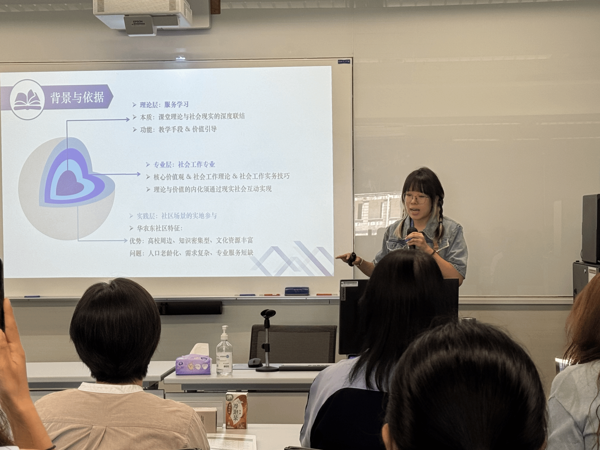 在个人汇报环节,孙心聪同学以伟德中国官网入口东社区的服务学习项目为例,系统阐述了该项目的回应的问题、实施过程、社会影响以及自我反思。她的汇报《学以致用,行中致思:服务学习的影响与反思》荣获服务学习个人汇报金奖。王喆同学则基于在粮道街街道社工站的实践,做了《从“做”到“悟”:社会工作服务学习的理论映照与实践突破》的回报,分享如何将理论融入现实服务,实现专业能力与个人素养的双重提升,并获得服务学习成果荣誉奖。